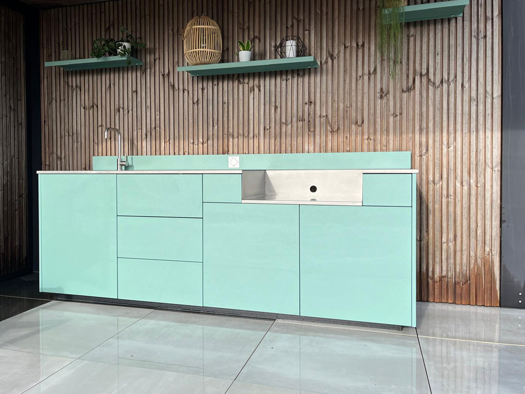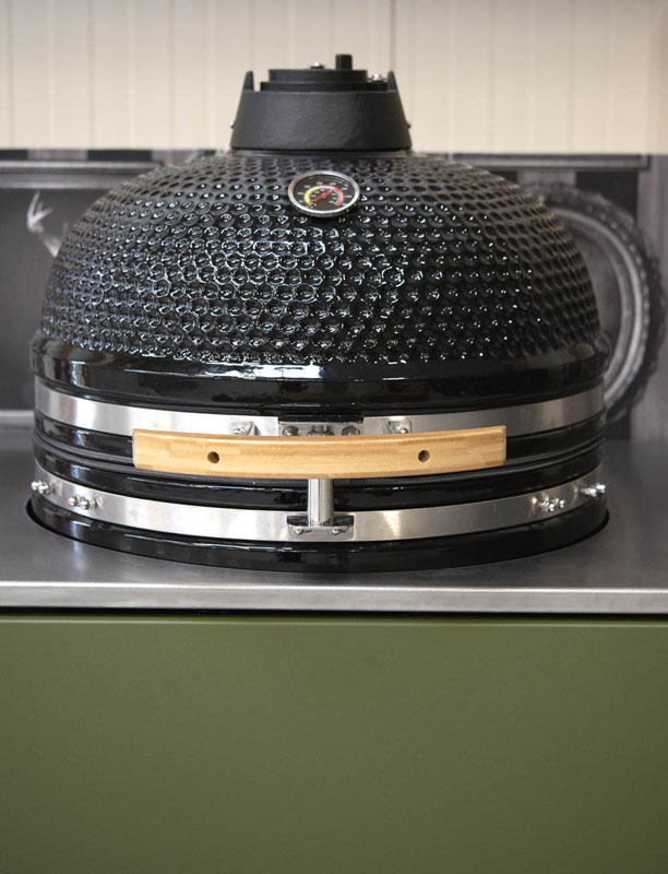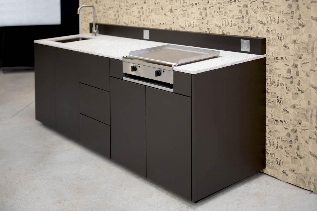 Que vous la choisissiez adossée ou non, de nombreuses configurations et options sont disponibles : tiroirs, placards, évier, braséro, barbecue, plancha, etc.